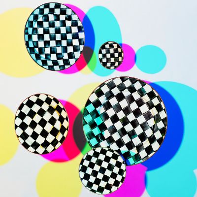 Tapas? Noshes? Tasty treats? The slightly smaller silhouette of the set of four Courtly Check® Enamel Appetizer Plates offers the warm, inviting high-contrast gloss of our most popular pattern. The comfort food of dinnerware, our most popular pattern is casual and cozy, with a subtle jewel-tone palette woven by an artisan’s brush through the glossy, hand-painted checks.