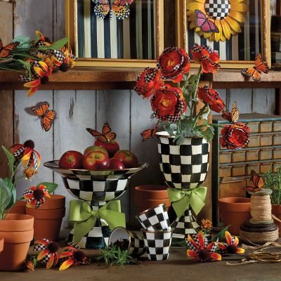 No matter the bouquet, our Courtly Check® Enamel Pedestal Vase with Green Bow really shines. The curvy, elevated silhouette is dressed to impress in hand-painted checks.