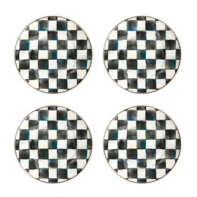 Tapas? Noshes? Tasty treats? This slightly smaller silhouette of the Courtly Check® Salad Plate Set offers the same warm, inviting high-contrast gloss of our most popular pattern. The comfort food of dinnerware, our most popular pattern is casual and cozy, with a subtle jewel-tone palette woven by an artisan’s brush through the glossy, hand-painted, high-contrast checks.