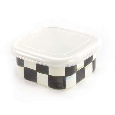 Square storage in ever-so-handy sizes, with BPA-free plastic lids to keep what’s inside fresh. (Did someone say “cookies”?) The steel underbody of our Small Courtly Check® Enamel Squarage Bowl is hand-painted with color-dragged checks and rimmed in bronzed stainless steel. Please note: Bowl and lid are not microwaveable.