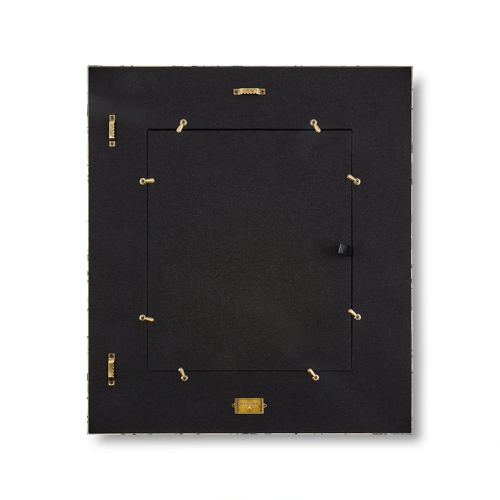 Reflect your good taste with our Courtly Check Enamel Wall Mirror. Features an elegant frame in our iconic enamel and hand-painted signature checks, bordered by golden wood moulding. Saw tooth hangers at back allow for both horizontal and vertical hanging.