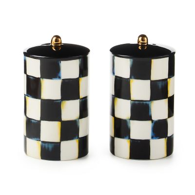 Sure to make your table fresh and fun, the Courtly Check® Farmhouse Salt & Pepper Set features hand-applied Courtly Check transfer decoration and is topped with a gold lustre ball. Presented in a beautiful gift box, it makes an ideal gift for the salt and pepper shaker collector, who might also happen to be your favorite hostess or host.