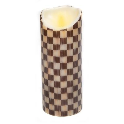 Every celebration can glow with MacKenzie-Childs style with our 10″ Courtly Check® Flicker Pillar. This everlasting light, decorated with our signature Courtly Check, has the look of a wax candle but glows with flickering light created with two AA batteries. The light can be set on a five-hour timer with an included remote control. Pair it with our 6″ and 8″ Courtly Check Flicker Pillars.