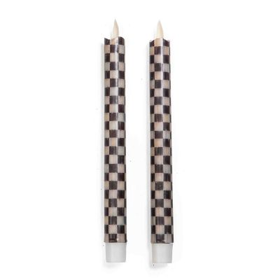 Every celebration can be illuminated with our set of two Courtly Check® Flicker Dinner Candles. These everlasting lights, decorated with our signature Courtly Check, have the look of wax candles, but glow with battery-powered flickering light. They can be set on a timer with an included remote control.