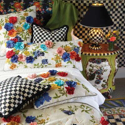 The classic table lamp as only MacKenzie-Childs could envision it. Handmade, hand-glazed, and hand-painted terra cotta clay body. Four firings and gold lustre give the Courtly Check® Globe Lamp an unmistakable, elegant appeal. Fabric-covered hard shade with braided trim.