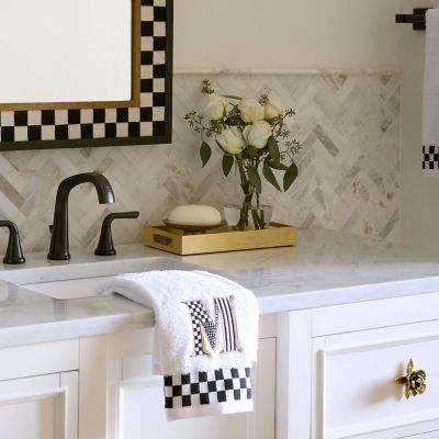 Pretty and practical in any room, the Courtly Check® Lacquer Vanity Tray is especially perfect in the bath, holding hand towels and other bathroom accessories. The bottom is printed Courtly Check with gold leaf on the sides, finished with layers of lacquer.