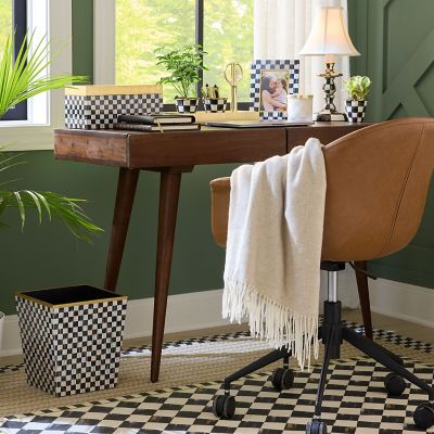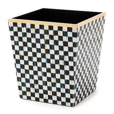 Dress up discards in any room with the Courtly Check® Lacquer Waste Bin. The sides are printed Courtly Check with gold leaf on the top edge, finished with layers of lacquer.