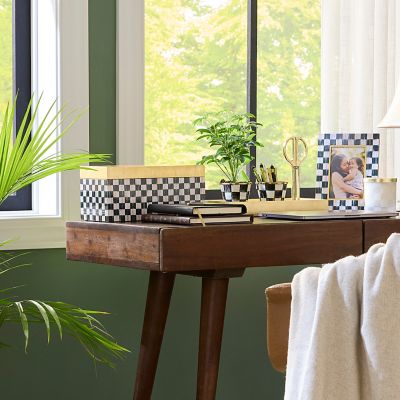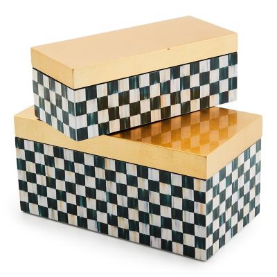 You’ll find stylish storage with the Courtly Check® Large Lacquer Box, featuring a printed and lacquered Courtly Check surface and finished with a hinged gold leaf top.