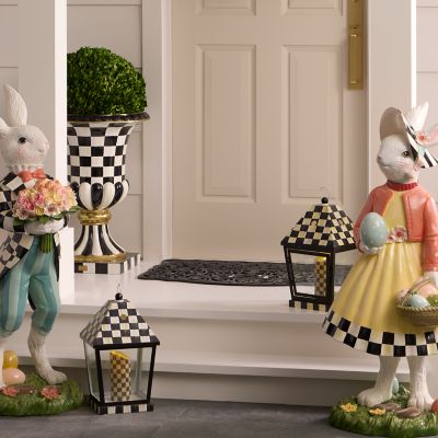Keep the patio party going with the gentle illumination of our Medium Courtly Check® Lantern, which is crafted of iron in a classic lantern shape with hand-painted Courtly details. All it needs is your favorite pillar candle.