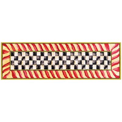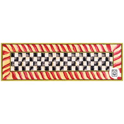 The 2’6″ x 8′ Red & Gold Courtly Check® Washable Rug updates a classic MC rug design in woven and printed polyester that can be cleaned in your home washing machine. Please follow included instructions.