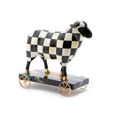 The Courtly Check® Sheep on Parade is the farm-fresh update to our iconic Moose on Parade. Decorated in hand-painted Courtly Check and with gilded hooves, it makes quite a statement, riding in style on a platform accented with hand-applied Black Flower Market transfers.