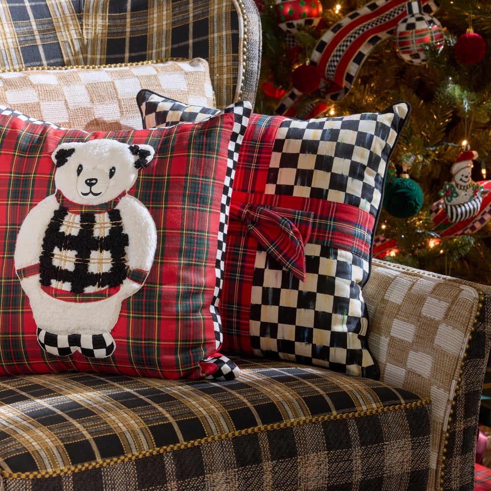Add comfort and joy with our one-of-a-kind seasonal pillows. The Courtly Check® Tartan Bow Pillow features our signature check wrapped with tartan ribbon and topped with a dimensional tartan bow. It’s finished with black cotton piping.