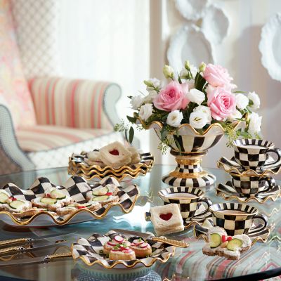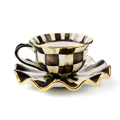 Dainty only in appearance with its hand-painted color dragged Courtly Checks®. Pair with the companion Courtly Check® Saucer for the perfect cup of tea. A beautiful juxtaposition of ivory and onyx, our deceptively simple signature checks reveal an intricate spectrum of jewel-toned colors. Handmade, fired, glazed, fired again, hand-painted, fired again, and embellished with lustre, each piece is stamped by the artisans involved in its creation.