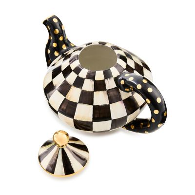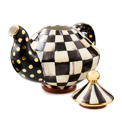Who doesn’t love the cozy charm of an old-fashioned teapot. This chubby charmer crafted of clay and hand-painted with our iconic, bold Courtly Check® pattern is tops on the wish list for many a bride and groom. Whether it’s tea for one or a whole cast of characters, this teapot’s as cozy as chamomile in the company of friends. A beautiful juxtaposition of ivory and onyx, our deceptively simple signature checks reveal an intricate spectrum of jewel-toned colors. Handmade, fired, glazed, fired again, hand-painted, fired again, and embellished with lustre, each piece is stamped by the artisans involved in its creation.