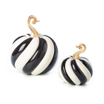 Harvest some style from our extraordinary pumpkin patch. Our playful patterns invite you to mix and match, creating a presentation of checks, dots, and stripes that’s uniquely yours. The Mini Courtly Twist Pumpkin features a swirled rendition of our Courtly Stripe, topped with a twisted golden stem.