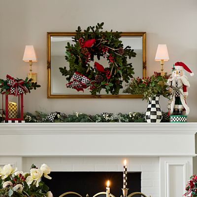 Deck the halls, the door, and more with this wreath made of everlasting holiday greenery that’s accented with felt holly leaves, pine cones, red berries, and a pair of red felt cardinals with Courtly Check® breasts. It’s finished with Red Courtly Check Ribbon.