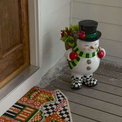 This ceramic hand-painted snowman planter is snow much fun, from the Courtly Check® boots to the top hat. It has a basket in the back that can hold a potted plant.
