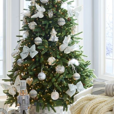 Make the tree a winter wonderland with this set of three ball ornaments. Each has a distinct bejeweled design that includes beads, rhinestones, and faux pearls, trimmed with bands of faceted black and white accents. They hang from twisted black and white cord loops and are finished with MacKenzie-Childs charms.