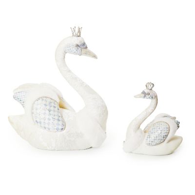 Create a winter wonderland in your home and add this spectacular small swan that’s done in ivory brocade and accented with Sterling Check®, faux fur, and glittered trim. The finishing touch is the rhinestone crown on its head. Be sure to place this in a spot where it will get all the attention it deserves.