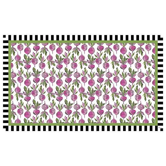 Faced with the decision between a utility mat that leans on its looks or one that performs without panache? With our 3′ × 5′ Dancing Beets Floor Mat, there’s no need to choose between beauty and function. Dressed with purple beets and bordered in black and white stripes, it’s made of slip-resistant vinyl, lending a fashionable and durable touch to your floors.