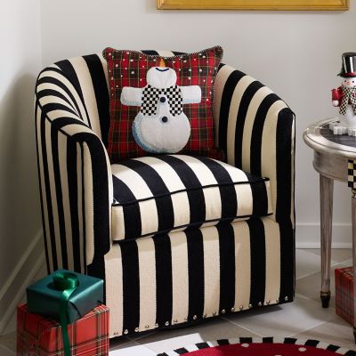 Add comfort and joy to your holiday home with this throw pillow, featuring an appliqued snowman done in textural fleece and accented with embroidery atop a tartan background. It’s finished with black and white check piping.