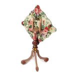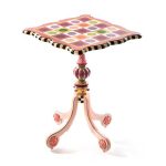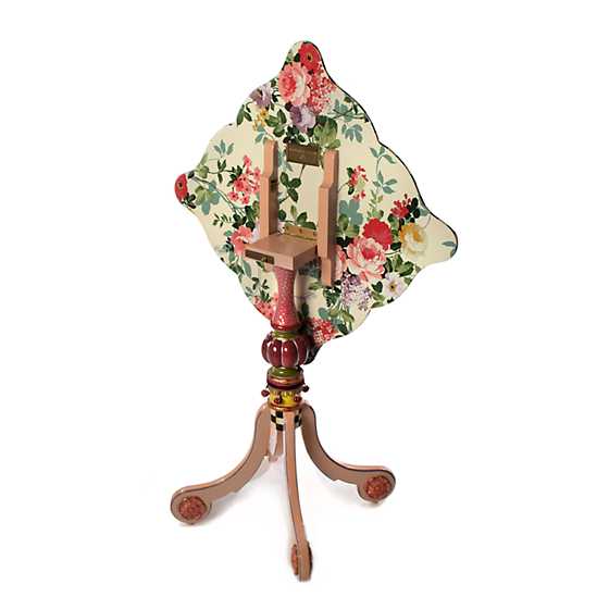 Imported mahoganhy and engineered wood table with brass slide, hand applied wallpaper and tassel trim. Hand-painted in Aurora, New York. Pieces may vary due to the handmade nature of each product. Imported.