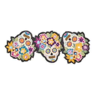 Celebrate the traditional Day of the Dead holiday on your table with this chenille table runner that’s accented with beads and sequins.