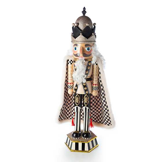Delight in the details of our hand-painted wooden Della Robbia Grand Nutcracker. This tall, regal fellow makes quite the impression when placed in an entry or near the fireplace. Hand-painted from head to toe, he stands at attention, wearing a faux-fur cape with Courtly Check® lining and a glittered gold crown. Add one to your nutcracker collection or give one to your favorite nutcracker collector.