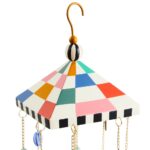 Let the breeze make music with this hand-painted wind chime, featuring metal bells and glass beads that are suspended from a cone-shaped topper that’s accented with Courtly Check®.