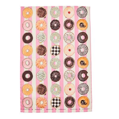 Fun and functional, this printed dish towel, featuring dozens of donuts, plus our distinctive logo, brings a special sweetness into the kitchen.