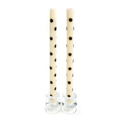 Turn your everyday meals into something more memorable with our Black Dot Dinner Candles. They feature a fun and fresh hand-painted pattern of polka dots that add the glowing touch of MacKenzie-Childs to your dining table. This set of beeswax-blend candles will cast a lovely lustre on your table for up to 10 hours.