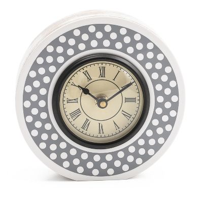 Mind your minutes with this simple and chic round clock, featuring a dotted resin front and sides of stained acacia wood.