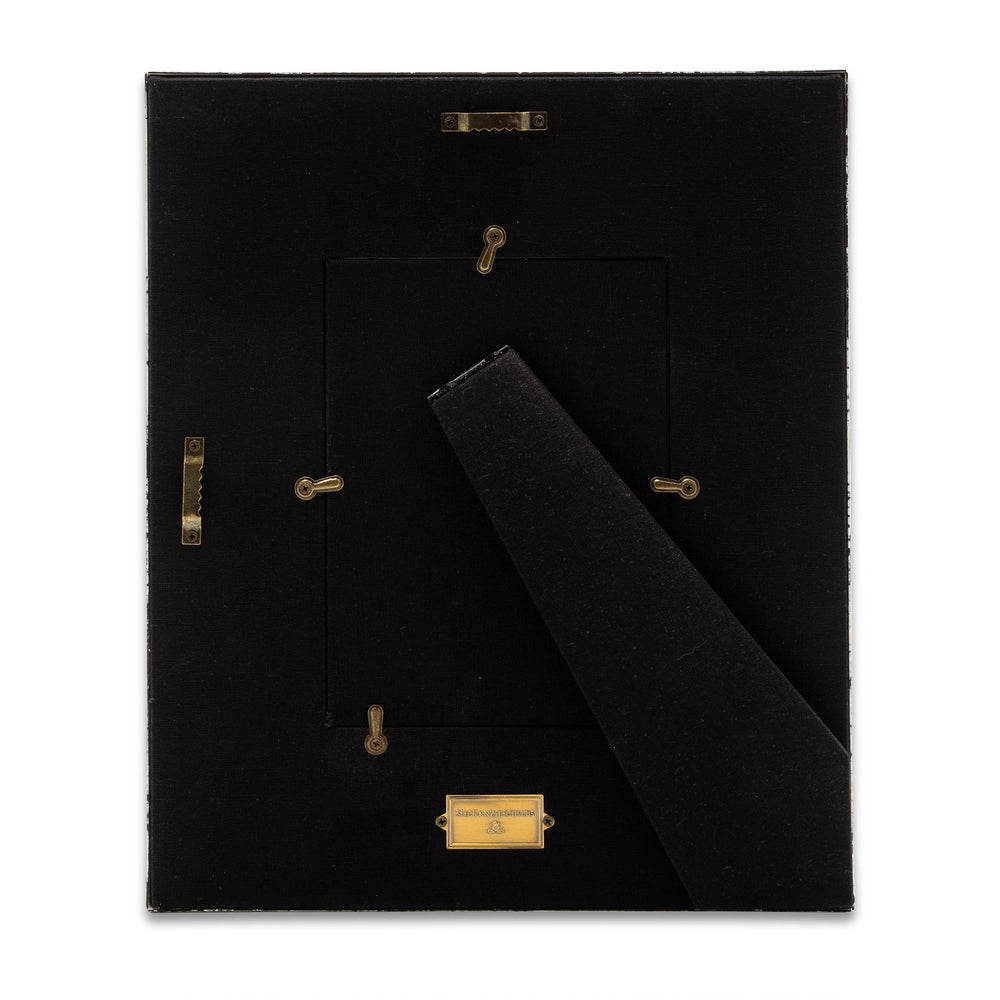The picture-perfect Emerald Check Frame features hand-painted Emerald Checks on a steel underbody and is backed with linen with a brass logo plate. Its elegant design makes it a stunning way to display your favorite photos or cherished memories, adding a touch of warmth and charm to any room.