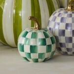 Take your pick from our truly unique pumpkin patch with the Emerald Check Mini Pumpkin. Decorated in our botanical check pattern and topped by a glimmering gold stem, this decorative gourd is sure to be a favorite in any autumnal display.
