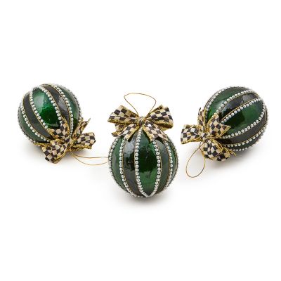 Make the tree magnificent with this set of three capiz ball ornaments. Each is hand-painted in shades of green with faux pearl trim and topped with a Courtly Check® bow.