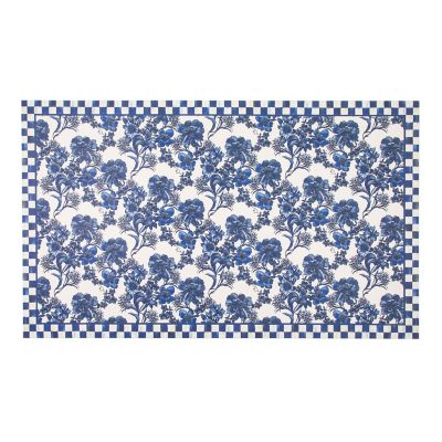 This 3′ x 5′ floor mat, featuring a blue floral pattern, is made of durable, slip-resistant vinyl, and dressed up with a border of Royal Check®.