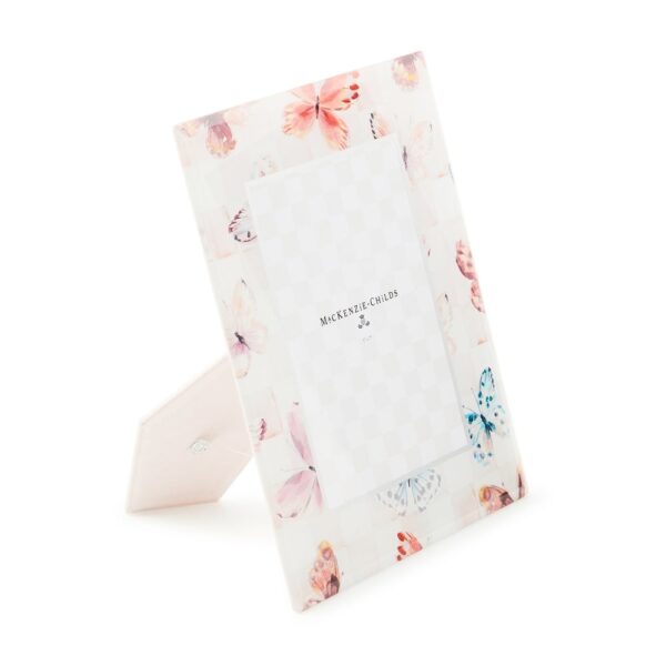 This picture-perfect 5″ x 7″ frame is a modern addition to your tabletop gallery. It features a pattern of butterflies on Rosy Check® printed on glass.