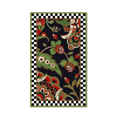The wool-blend 3′ × 5′ Evenfall Rug makes a dark and dramatic statement in any interior, featuring a tufted and sculpted paisley pattern that’s finished with a checked border.