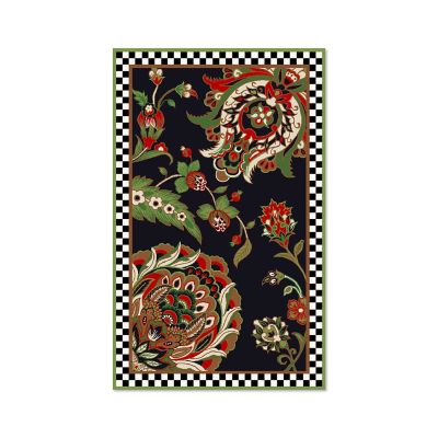 The wool-blend 5′ × 8′ Evenfall Rug makes a dark and dramatic statement in any interior, featuring a tufted and sculpted paisley pattern that’s finished with a checked border.