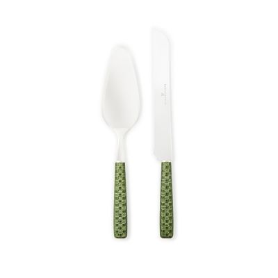 Serve sweets in style with our Everyday Green Cake Serving Set. The set, consisting of a cake knife and cake server, features stainless-steel heads set into check-embossed handles.