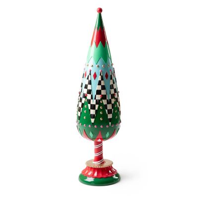 Deck the tabletops or the mantel with this tall tree sporting red and green raised fair isle patterns with Courtly patterns on the base.
