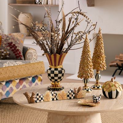 Welcome fall to your tabletops with this elegant autumnal large tree, featuring a cascade of hand-painted oak leaves on a pedestal accented with Courtly patterns and gold leaf.