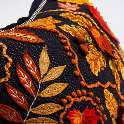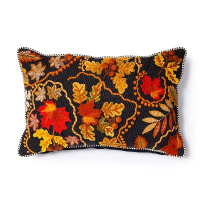 Accent your harvest home with this lumbar pillow, featuring appliqued felt leaves and dimensional embroidered acorns and finished with black and white check piping.