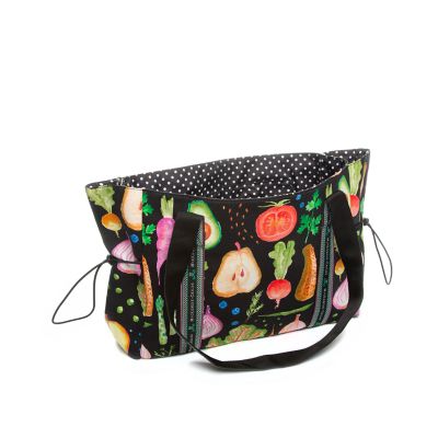 Fill this casual-chic Farmers Market Tote to the top with fresh fruit or gorgeous vegetables from the market—it’s strong enough to get your harvest all the way home. The cotton shell is outfitted with a colorful veggie print that’s lined with water-resistant polyester. It has drawstring sides and checked webbed straps to make it look all the more luxe.