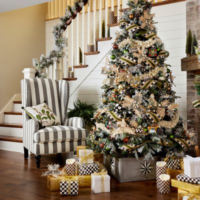 The Farmhouse Poinsettia Clip, accented with leaves of burlap and Courtly Check®, adds the fresh and festive touch of MacKenzie-Childs to your tree as well as holiday garlands, wreaths, and packages.