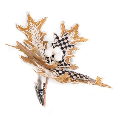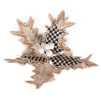 The Farmhouse Poinsettia Clip, accented with leaves of burlap and Courtly Check®, adds the fresh and festive touch of MacKenzie-Childs to your tree as well as holiday garlands, wreaths, and packages.