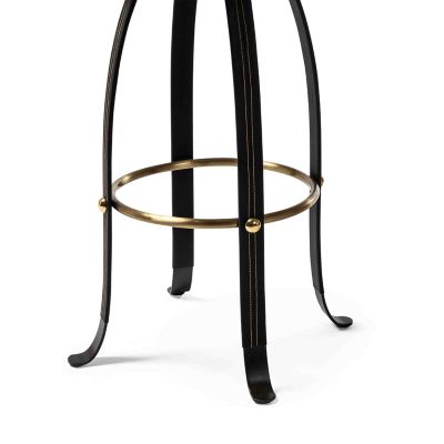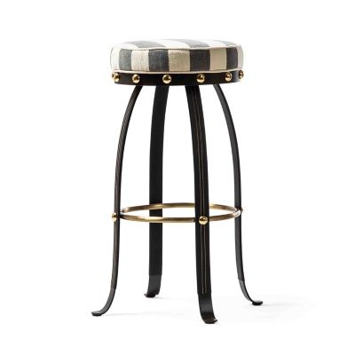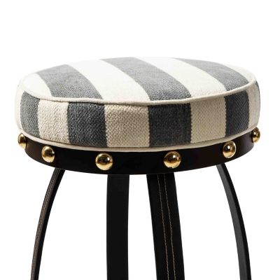 Please, be seated in The Entertaining Kitchen™ on this counter stool. With stylishly shaped metal legs wrapped in leather and trimmed with brass button detailing, it’s fitted with a comfortable cushion upholstered in grey chenille stripe.