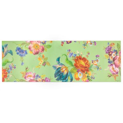 With our 2’6″ x 8′ Green Flower Market Blooms Floor Mat, there’s no need to choose between beauty and function. Made of durable, slip-resistant vinyl and dressed up with the most beloved of MacKenzie-Childs patterns, this indispensable runner is equal parts workhorse and show pony.