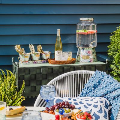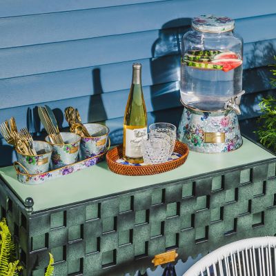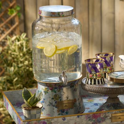 Having a party? Our Flower Market Galvanized Beverage Dispenser stands ready to serve. Generously sized to hold three gallons, its galvanized lid is decorated with hand-applied Flower Market transfers with a glass dispenser and stainless-steel spout. Spend more time enjoying your guests and less time running out for refills!