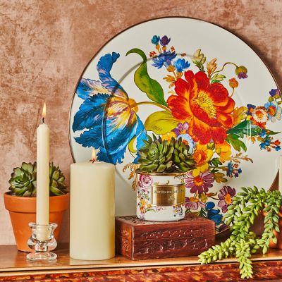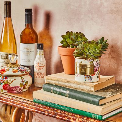 Add to the endless possibilities for our enamel canisters with the Mini White Flower Market Canister. Our smallest sized canister, the Mini stands handsomely alone or harmonizes delightfully in a set. Keep it in the kitchen or invent new uses around the house. It’s perfect for cotton balls and swabs in the bathroom, pens and pencils in the office, or knickknacks and doodads in the kids’ room. Color glazed in white, it’s decorated with hand-applied fanciful botanical transfers that recall a lush English garden in the peak of summer, and the lid is topped with a clear glass knob.
